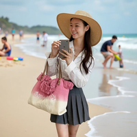 Nuevo bolso de mano tejido con borlas versátil, bolso de lona degradado de gran capacidad, bolsos de verano para mujer